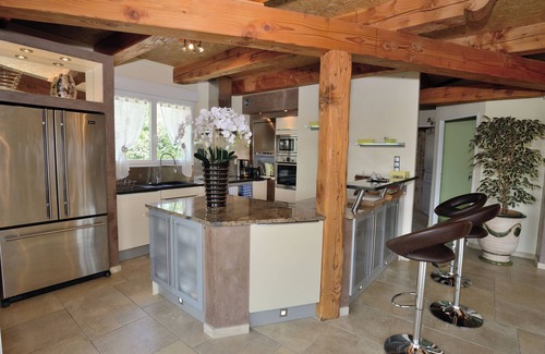Le Mas de l'Oasis de Boisset offers a residence in the spirit of the region you are visiting. Its Cévennes decoration extending over 210 m2 can accommodate up to 12 people in absolute comfort. The living room with its warm decoration will allow you to have a great time, to extend into a generous dining room, adjoining a fully furnished and equipped kitchen.
