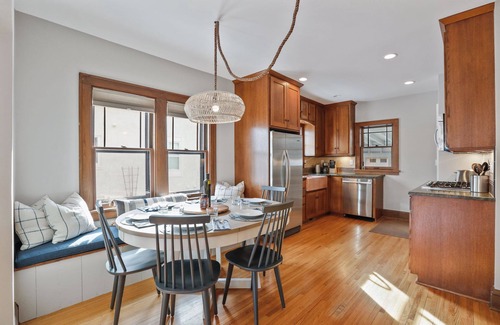 Cozy three bedroom home in downtown Wayzata. 5 minute walk to shops, restaurants, and the lake! The home has two ground floor bedrooms. The back bedroom has a queen bed. The front bedroom has a dedicated work area with a desk and a separate room with a queen bed. The bonus space upstairs has its own half bath, king bed, and twin. There is plenty of space for you and your family. Sleeps up to eight guests.