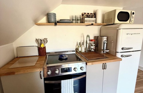 Rascal Ranch is an attic apartment located in our carriage house behind our main home. We live in the house in front, so we’re nearby if you need anything! Feel free to ask for local recommendations—we love sharing our favorite spots.