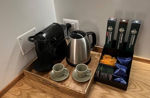 The kitchenette is equipped with an oven and a refrigerator, as well as a coffee maker, an electric kettle, and cookware. Enjoy the WiFi and cable/satellite TV. Bathroom amenities include a hair dryer, towels, and toilet paper. Other amenities at this 1-bedroom, 1-bathroom rental include bed sheets, an ironing board, air conditioning, and heating.
