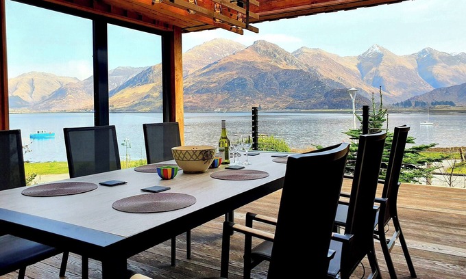 Bedroom 2: Zip And Link 2 x Single (3ft) Beds. Gas central heating, electricity, bed linen, towels, and 50mbps high speed Wi-Fi included. Initial logs for wood burner included. Travel cot and highchair available on request. Stairgate.. Front garden with roofed decking area, steps to garden and garden furniture. Electric car charging point. Bike and kayak store. Private parking for 2 cars. No smoking. Please note: There are 10 steps in the garden.. Ratagan Lodge is blessed with abundance of attractive features, with the owner’s mission being to create a property like no other in the area and something that’s as stunning inside as it’s wonderful setting outside. With the waters of Loch Duich and the ‘5 sisters of Kintail’ mountains acting as a backdrop the decking area to the front has been specially created to enable guests to enjoy the stunning vistas; no matter the time of year. Whether it’s to enjoy your morning coffee or for a spot of al fresco dining, you’ll find it hard to leave this sheltered dining area, and although we cannot guarantee the weather, we can guarantee the fresh Highland air combined with the beautiful scenery will leave you feeling most relaxed and refreshed.