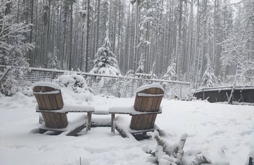 Welcome to our cedar cabin. Direct access to trails, lakes, and rivers. Hundreds of trails for outdoor enthusiasts to walk, hike, bike, forage, etc. and yet only 30 miles from Seattle. Don't forget to explore the local shops, wineries, breweries, restaurants, Legendary Snoqualmie Falls in North Bend, and the nearby town of Snoqualmie. This is a separate house, that shares a fenced yard & fire pit with a studio cottage. Friendly, well-trained, socialized, Furry Friends are welcome.