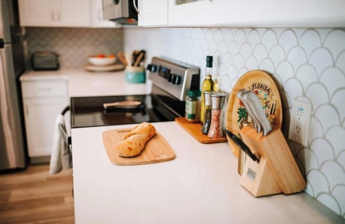 Treat yourself to modern coastal luxury in this spacious and beautiful first floor cottage. Steps to Main Street, a short stroll to the waterfront & easy drive to Honeymoon/Caladesi Island & Clearwater Beach. Walk to water, restaurants, shops, breweries, & Pinellas Exercise Trail. Enjoy award-winning dining, live music, & stunning sunsets then take the short walk back to the quiet of your own private space. Fully equipped kitchen. Pet friendly.