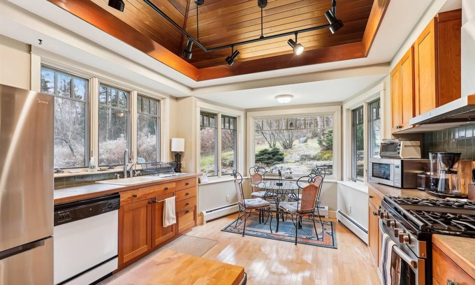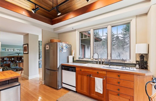 Outside, the property offers access to stunning natural beauty, with nearby activities such as skiing, snowboarding, hiking, and mountain biking. For those looking to explore, the area is rich with opportunities for kayaking, brewery tours, and even ice skating. Raven's Nest also prioritizes your safety and comfort, featuring smoke and carbon monoxide detectors, fire extinguishers, and professional housekeeping. With linens and bathroom towels provided, as well as a washer and dryer for your convenience, you can focus on enjoying your stay.