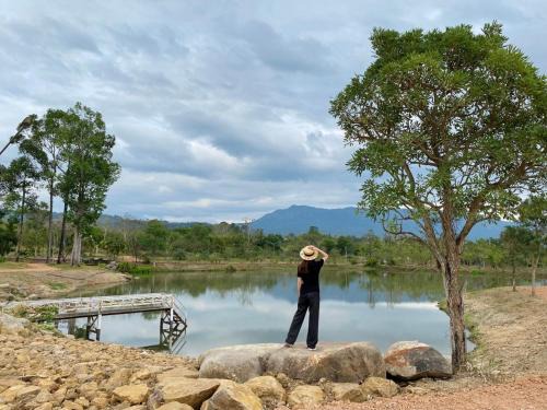 - วิวเขาล้อมรอบ มีน้ำจากเขื่อนไหลผ่าน มีสระว่ายน้ำ คาราโอเกะ สงบส่วนตัวแนวธรรมชาติ