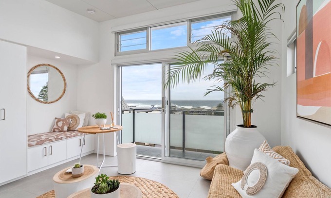 Nestled along the stunning coastline of Wamberal, this charming oceanfront studio apartment offers breathtaking views of the sparkling ocean. Imagine waking up to the sound of waves and stepping onto your private balcony to soak in the sunrise. With a prime location just steps from the beach, you can easily indulge in sun-soaked days, the perfect place to get away from everyday life.