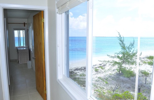 Rayann's Beach House @ Three Sisters' Rocks, located 5 minutes drive from the airport, and 15 minutes from George Town, the main town of Great Exuma Island, is a 2-story town house that has two x 2 bedrooms, 2 and a half bathrooms apartments. For each unit, the upper level houses 2 bedrooms and 2 bathrooms. Each bedroom has a private balcony. The master bedroom has a panoramic view of the sea. Downstairs is the kitchen area, a half bathroom, and an open area with a dining and a lounge area. A double French door leads to a private verandah with a breathtaking view of the ocean. There are ceiling fans in every room and central airconditioning for when the island breezes are not cool enough.
