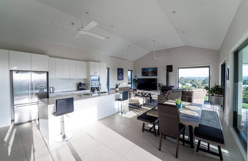 Amazing views and tranquility an hour away from the centre of Sydney. Architect designed residence at the top of a hill on 3.5 acres with a beautiful living area and backyard for entertaining. All 3 bedrooms have an ensuite and external access to the backyard. The views are even more spectacular at night when most of the Sydney Basin can be seen lit up as well as the milky way on a clear night. A great place for entertaining with a fire pit and gas barbeque and festoon lights. A fully functional kitchen complete with essentials and many options for cooking. There are a lot of birds and wildlife in the area. A great getaway on the outskirts of Sydney.