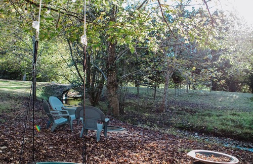 1. The Creek - There is a year-round creek that dissects the level pasture land (5-6 acres). The creek "Philips Creek" is the perfect hang-out spot; there is large tree creek-side with lights strung and a couple of swings for the kids! There is also a large fire-pit perfect for relaxing and listening to the rolling sounds of the water. The creek is also perfect for cooling off. Whether you want to play around with the stones lining the bottom of the creek or if you want to plant yourself in the middle with an adirondack chair, the memories made splashing around in the creek are never forgotten. Phillips Creek spans just over 800 feet within our land.