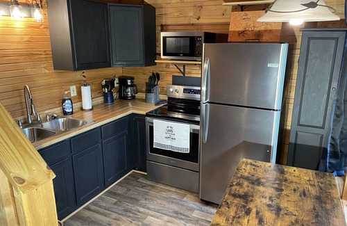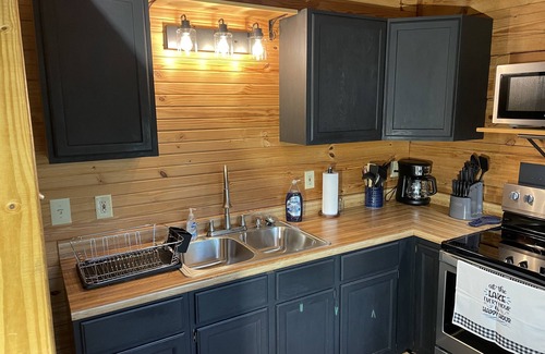 Lowe Tide Log Cabin is located on a quiet dead end road surrounded by trees and comes with everything you need for a Lake getaway! Plenty of parking for 2-3 vehicles plus a boat. Across the water from Burnside marina.. Sleeps up to 6 and features several outdoor areas. Inside is a cozy family room, nice kitchen, master suite, beautiful loft, 2 full baths and a laundry room. Both areas pictured with beds require steps to get to, one in the loft the other in the basement. Convently located close to several restaurants and stores close by.