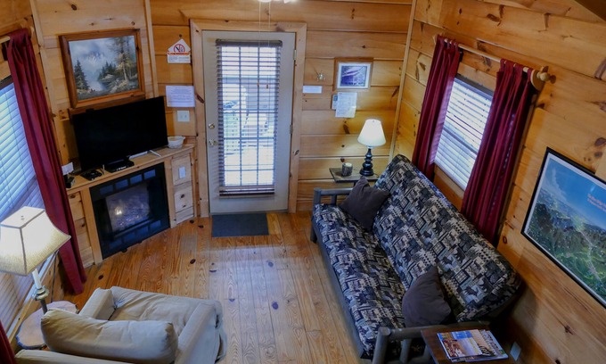 Real Logs-1BR, sleeping loft & futon-sleeps 6. Riverside w/Hot Tub | Cabin in Newland