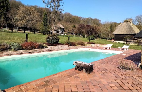 Real Norman cottage with access to a heated swimming pool is located in Beuzeville. Real Norman cottage with access to a heated swimming pool provides accommodation, featuring Parking, Pool, View, among other amenities. This House features Parking, Pool, View, to make your stay a comfortable one.