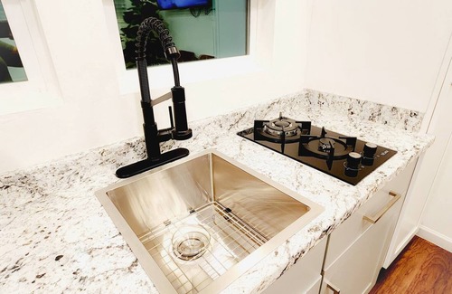 Escape to a tranquil oasis just minutes from downtown at Cecy and her husband's delightful tiny home/RV community. Tucked away behind the main house, guests are greeted by a shaded awning, outdoor picnic area, and twinkling lights that create a serene ambiance. The tiny house itself exudes charm and character, with thoughtful design details and clever craftsmanship evident throughout. From the high ceiling that eliminates any sense of claustrophobia to the luxurious step-in shower and large TV with superb sound, every aspect has been carefully considered to ensure a comfortable stay. .