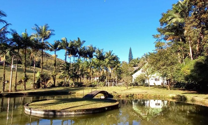 Offering a garden, Recanto Hellmann provides accommodations in Gaspar. This recently renovated vacation home is located 10 miles from Blumenau Bus Station and 12 miles from Castelinho da Havan. There's an outdoor fireplace and guests can use free Wifi and free private parking. Opening onto a patio with lake views, the spacious air-conditioned vacation home consists of 3 bedrooms. Providing a balcony with mountain views, this vacation home also offers a satellite flat-screen TV, a well-equipped kitchen with an oven, a fridge, and a stovetop, as well as 2 bathrooms with a shower and a hair dryer. The property has an outdoor dining area. Guests at the vacation home can enjoy billiards on-site, or go hiking or walking tours in the surrounding area. Ministro Victor Konder International Airport is 34 miles away.