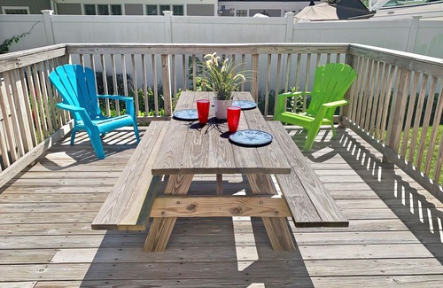 Our house is where we escape from the complexities of our lives and take time to notice and enjoy simple things that are not part of our usual busy day-to-day activities. You can feel and smell the ocean air even before you plan your first trip down to the water. You never know what wildlife you might see - such as the family of birds, adults leading the ducklings across the lawn. The mini-golf and ice cream are just around the corner. Our home is a place to take a deep breath, reflect and find peace.