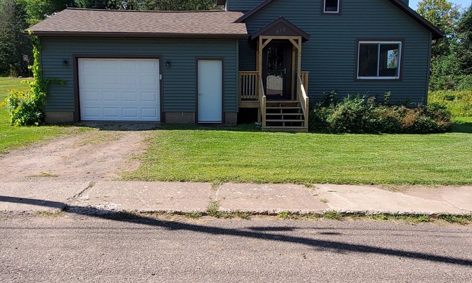 Recently remodeled house, in close proximity to 3 Midwest premier ski hills including Snow River Resort and directly across street from Michigan Snowmobile/ORV Trail #2 on a double city lot with plenty of room for vehicles and trailers. The house has a single car attached garage and a back deck off the dining room. 4 bedrooms and a full bathroom upstairs. Two of the bedrooms are small with a twin bed and the other two bedrooms have a queen size bed. Main floor has an open concept look with a front foyer, living room with a smart TV and high-speed WiFi. A dining room with a French door that opens to a large back deck. A fully equipped kitchen with an island. Fridge, stove, microwave, coffee pot, blender, toaster, pizzazz, crockpot. Cookware and utensils. Basement with a washer and dryer, foosball, and a basketball shooting game. Hairdryer and bath linens, bed linens and kitchen linens are all furnished. Local restaurants, taverns, supermarket right in town. Nearby ski hills and waterfalls minutes away. When you arrive you will be self check-in with a door code.