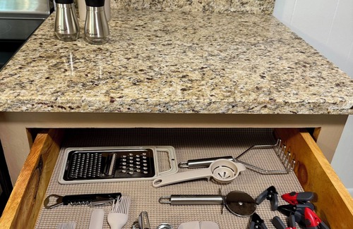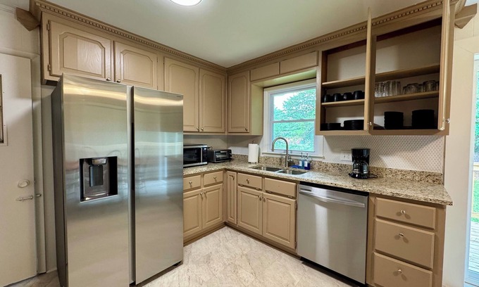 Well-furnished home equipped with everything for your needs. Living room with 55'' Smart TV and queen sofa bed, fully stocked kitchen with toaster oven/air fryer, coffee station and all cooking utensils.
