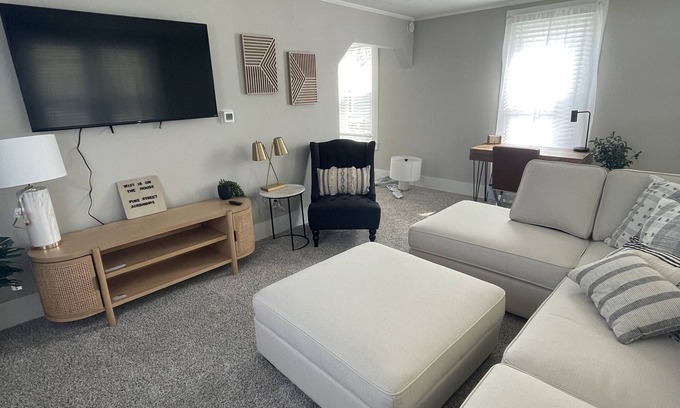 Enjoy a relaxing stay at this recently updated and remodeled home. The home offers 2 bedrooms, one a queen and one a king mattress. Both bedrooms have Smart TVs as well as a living room Smart TV. All TVs have access to Netflix and the living room TV also has access to YouTube TV. A brand new, large couch allows your group plenty of room to spread out and relax. There is a kitchen fully stocked to prep meals and a washer/dryer for your use. You cannot beat the location; you are within walking distance to downtown Perrysburg or just a short drive/Uber ride to all the town has to offer.