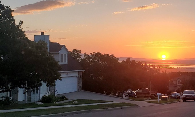 While visiting with us, enjoy the 180 degree view from the master suite balcony, gazing at the Oquirrh Mountains, and the Great Salt Lake. Or, simply relax while enjoying the BBQ on the backyard deck that overlooks lush landscaping and a bronze sculpted fountain. Yard is spacious for playing & picnicing.