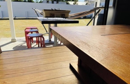 You can enjoy your time all year round in the covered BBQ space even in light rain