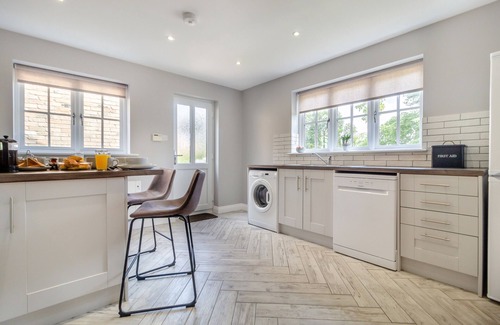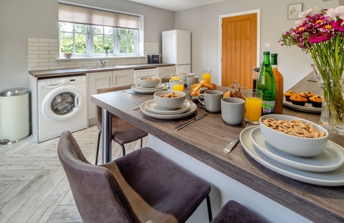 You’ll feel instantly at home in this welcoming and tastefully presented cottage. The well-equipped kitchen has everything needed to whip up a home-cooked meal and a sit-up island for dining. The lounge provides a wonderful space for cosying up in front of the wood burner in the cooler months and enjoying a movie night on the Smart TV. The master bedroom has a plush king-size bed with patio doors to the garden and the second bedroom has a double bed. The family bathroom has a large walk-in shower.