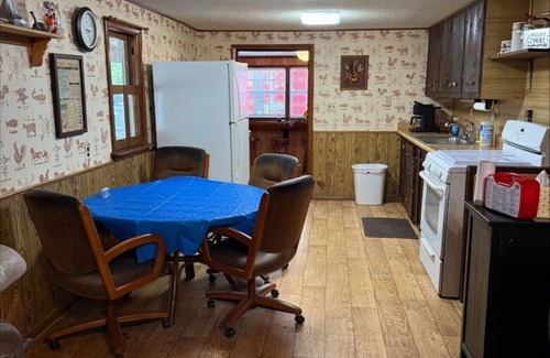 Welcome to Red Barn Close to Lake, where you'll find the perfect combination of comfort and relaxation. This house as a loft, which has a spiral staircase. Don't worry if spiral staircase is not for you, there is an outdoor stair that leads to upstairs as well. This charming house can accommodate up to 8 guests, with 1 Bedroom there is 1 Queen size bed, twin XL Bed, Twin Bed, and rollaway bed upstairs in the loft. Downstairs the couch is a pull out that sleeps 2 and a Futon that can sleep 1. The spacious living room boasts a smart TV and connects to the well-appointed kitchen and dining area, making it the ideal spot for hanging out with friends and family. This house also provides extra parking to accommodate for boats.
