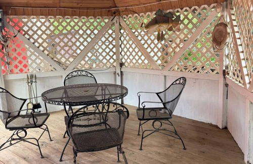 Speaking of the back gazebo, you'll find a table and seating there, along with a fire pit and gas grill – perfect for cooking up a delicious meal or roasting marshmallows. Plus, the location is unbeatable – close to the lake, within walking distance to a local bar, and perfect for just unwinding and recharging. Come experience the ultimate getaway at the Red Barn Close to Lake. Book your stay today!