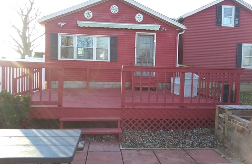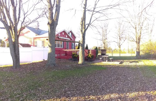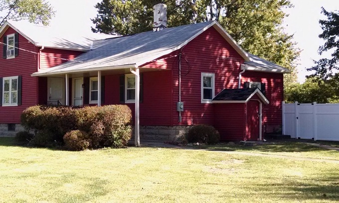 Charming remodeled farmhouse, 2.5 miles from downtown Oberlin: country freedom w/ city comforts. There is ample parking, large deck with a retractable cover and fenced in backyard featuring a pavilion and bar-b-que area. Fully equipped kitchen and a dining room with scenic views. Situated on 40 acres of farmland. Laundry facilities are available.