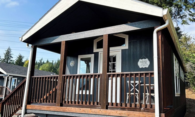 Red Bluff Cabin is a private guest cabin tucked away on 5 private acres in the foothills of Stevenson, WA. It is one of 3 rental cabins. Located next door to Maple Leaf Events and only 2 miles from Skamania Lodge. The front porch offers a breathtaking view of the Cascade Mountains. This space includes a full living room, separate bedroom, King-Size bed, 50" smart television, heating/ac, Keurig Coffee Maker, full Kitchen, full front porch, closet space, and ultimate privacy.