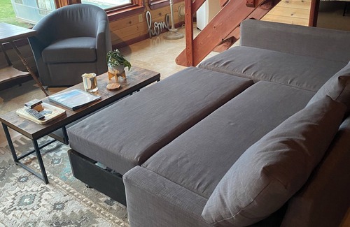 Relaxing upper unit of Red Bluffs Lodge located on the banks of the Belle Fourche River just minutes away from Devils Tower. This unit has 2 bedrooms on the main level with queen beds in both bedrooms. In the living area the couch will pull out into a Full sized bed. Taking the stairs up to the loft area there are 2 full sized beds along with a cozy sitting area.
