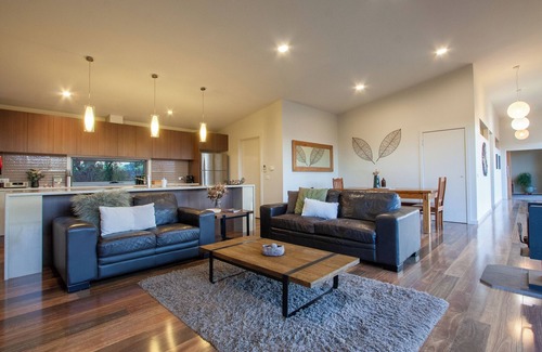 Inside there are 2 living spaces, a modern fully-equipped kitchen, 2 bathrooms, laundry, air conditioning and wood fireplace. Outside the retreat boasts it's own private solar-heated swimming pool, expansive lawns and gardens, outdoor dining table, gas BBQ and undercover parking.