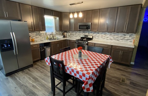 Neighbors have asked for no parties or excessive noise as it’s a very quiet residential neighborhood at a cul-de-sac. This is a ranch style home that offers an open floor plan with all the bedrooms and bathrooms on one level. The game room is in the basement, equipped with a pool table (billiards), kids toys and extra chairs if needed. There’s an extra fridge in the kitchen for larger gatherings and events. Those have to be approved by the neighbours and supervised by the host.