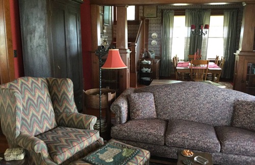 GUEST ACCESS - Guests may park on the west side of the circle driveway for the nearest convenience to the front porch entrance. You may enter the Bed & Breakfast by way of the front porch. Also you are welcome to sit on our large front porch in the morning to enjoy a cup of coffee or in the late evening to enjoy the stars, weather permitting of course. The Farmhouse also offers a large dining room and living room just for our guests, with a fireplace and a flat screen television for your personal enjoyment.