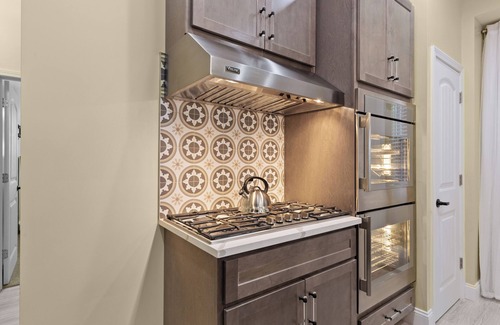 The fully stocked kitchen includes stainless steel appliances, double ovens, and a spacious island with seating for four—ideal for meal prep or quick breakfasts. Nearby, the dining area seats eight and features a convertible table that transforms into a pool or ping pong table—great for game nights and casual competition. Relax in the cozy living room with a large L-shaped sofa and wall-mounted smart TV with cable streaming. Fast WiFi, a washer/dryer, and family-friendly extras like a pack-n-play, highchair, and welcome snacks ensure a stress-free stay.