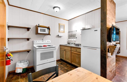 Welcome to Hideaway Resort! This 1 bedroom/ 1 bathroom duplex cabin, has everything you are looking for on the lake. Lake front views, dock access, and large resort pool. Come see why we have had guests stay for 10, 15, and even 30 years!