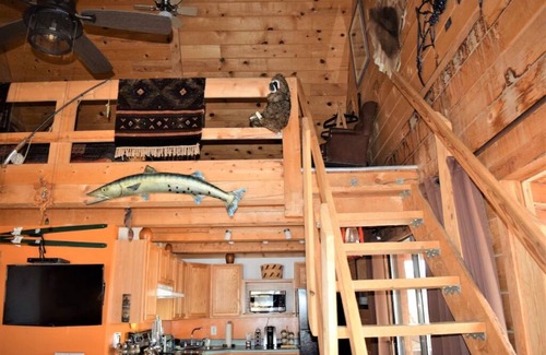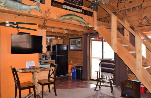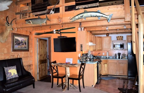 The Big Horn Cabin is a true log cabin. The cabin allows you to cook in your own kitchen with a refrigerator/freezer, microwave, stove/oven, and Keurig Coffee machine. The kitchen comes completely stocked with dishes, pots & pans and utensils. The Big Horn Cabin sleeps a total of 4 guests, with queen bed upstairs and a queen sleeper sofa in the living room . The bathroom provides a tub/ shower and comes completely stocked with linens & towels at guest check-in (No daily housekeeping service is provided). A propane grill is provided as well as a propane fire pit on the wrap around deck. The Big Horn Cabin has its own private entrance & parking, with additional parking for adventure equipment on property. This cabin is dog friendly only, with a $10 nightly fee. Please let us know if you will be bringing a dog when making the reservation.