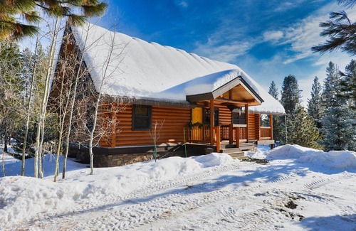 Red Elk Lodge is our lovely, three level log home with a rustic southwestern flair. Savor a Red Elk sunrise or sunset and lounge in comfort year-round on the covered, wrap-around deck. Well situated on a large wooded lot in a quiet neighborhood, this mountain getaway is just minutes from McCall, Payette Lake and River access.