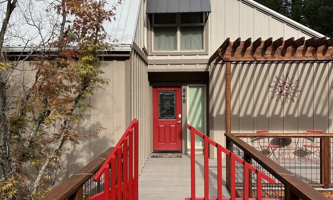 The Red Gate Retreat has recently been reincarnated – Everything has been remodeled and renewed in 2015, and new furniture in 2021, perfect for your relaxing retreat from normal life. The home feels cozy yet spacious, with a modern cabin-like charm with its vast windows, interesting angles, vaulted ceilings and skylights. As the remodel progressed, the unique character of the home revealed itself – we call it “clean, industrial, rustic, cottage.” (You have to be there to get it!) PLEASE NOTE: We're sorry, but due to the design of our staircase, our home is NOT suitable for children under 6 years old. Also, our natural yard beyond our decks is off limits.