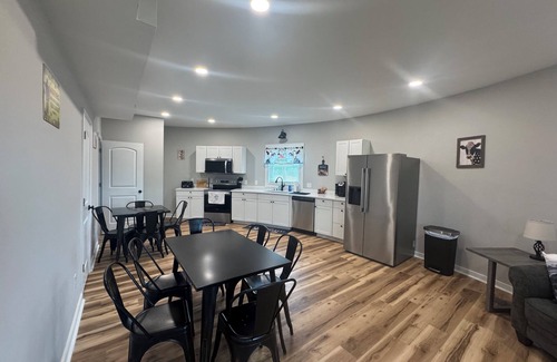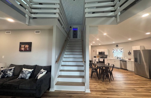 Escape to a phenomenal Farmers Grain Bin turned into a modern 3-bedroom home just minutes from Lynchburg. Each bedroom features a king bed for ultimate comfort. With amenities like a hair dryer, heating, AC, and an iron, guests will feel right at home. Plus, there's a cozy living room with 3 sofa beds for extra sleeping space. Offers an amazing kitchen even for large family meals. Washer & Dryer just off the kitchen. This home is on a working cattle farm for an amazing setting. Come enjoy this very large home and its amazing front porch with the view of cattle moving about grazing the land. Book now and enjoy everything this fabulous house has to offer.