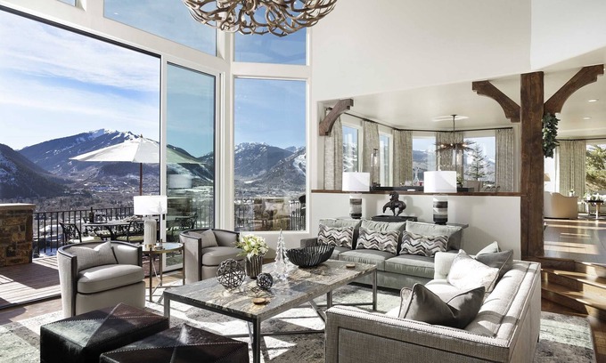 Experience the natural beauty of Aspen from the expansive decking of Red Mountain Rise, all the way to Aspen Mountain, Independence Pass and Maroon Bells. Located on Red Mountain, Aspen's premier residential terrain, this all-season sanctuary is aglow with modern mountain style with snow and stone hues and whimsical Nordic décor.