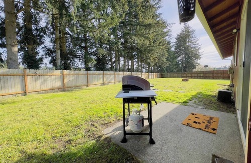 Welcome to our charming farmhouse in Rochester, WA! Nestled in the scenic Pacific Northwest, this three bedroom charmer has a fully equipped kitchen, indoor dining, and a cozy living area with oversized smart tv. There is an attached garage plus laundry area. You can relax in the fenced backyard with outdoor dining. It's conveniently located near Great Wolf Lodge, Interstate 5, and South Sound Speedway. Perfect for family getaways or adventures with friends - and Fido is welcome too!