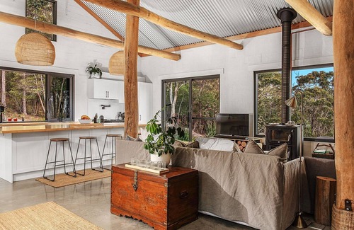 Red Rocks Mountain Retreat is an off-grid, renovated stone and timber house. It is secluded on 40 acres, nestled between Cambewarra Range Nature Reserve and old growth forest, with views to the South Coast.