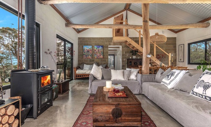 Escape, rejuvenate and explore the seclusion of the award-winning Red Rocks Mountain Retreat - a beautiful, off the grid property that oozes comfort, relaxation and total privacy. Immerse yourself in the surrounding nature and totally unwind. Recharge in the sunken outdoor bath with views to the South Coast. Cozy up to the fireplace or one of the two outdoor firepits. Explore the secret waterfall, and at sunset, take a drink and meander to the sensational Red Rocks Trig Lookout overlooking Kangaroo Valley.