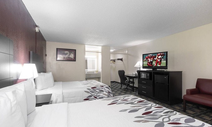 Best-rates for the Red Roof Inn Murray starts from $77 per night with includes Pet Friendly, Bedding/Linens, Toiletries, Parking, Balcony/Terrace, Wellness Facilities, TV, Accessibility, Internet, Laundry, Air Conditioner, Designated Smoking Area, Fireplace/Heating, Guest Services, Child Friendly, Kitchen with all other amenities. Perfect for Weddings is committed to ensuring every guest experiences a comfortable and extraordinary stay, whether planning a romantic getaway, a honeymoon, a pet-friendly stay, or celebrating with the entire wedding party.