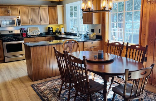 The cabin is immaculately kept and well stocked. Brand new flooring/carpet/rugs throughout entire cabin! Enjoy wireless internet, cable television, a multi zone SONOS sound system. New bed linens and fresh towels throughout. The granite counter top kitchen is fully stocked with all the amenities, and features an oven/range with 5 gas burners, refrigerator with ice maker, and dishwasher. Outdoor gas grill. Our kitchen has everything you'll need to make a gourmet meal after a long day on the lake. This is our dream vacation home, and we want it to be yours too, so we make every effort to make sure you have what you need for a relaxing vacation by the lake.