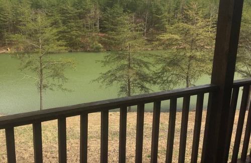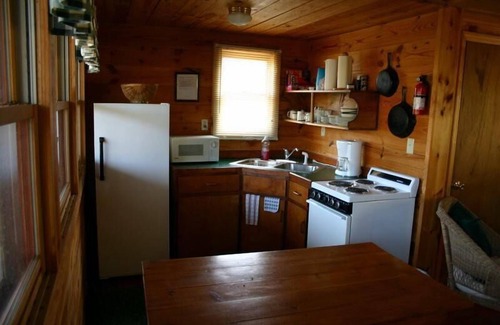 Red Roof is located right above the start of the lake. This two story cabin has two full beds and a twin bed upstairs. Downstairs there is a full size pull out sofa in the livingroom. The kitchen is equipped with all you will need for your stay. There is a bathroom with shower located downstairs as well. Linens and towels are provided along with toilet paper, paper towels, and dish/hand soap. Sit on the deck and relax while enjoying the view of the lake. 410 acres of Hiking trails