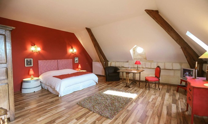 Red Room - In the heart of the vineyard - calm, chic, incredible view, all comfort is located in Neac. Red Room - In the heart of the vineyard - calm, chic, incredible view, all comfort provides accommodation, featuring Sports/Activities, Bedding/Linens, Child Friendly, among other amenities. This House features Sports/Activities, Bedding/Linens, Child Friendly, to make your stay a comfortable one.