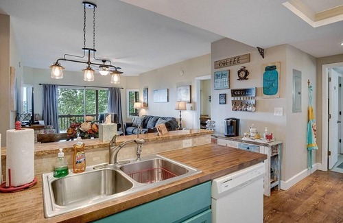 Our home is two stories and perfect for family and friends that enjoy vacationing together. The downstairs is connected with outside stairs off the top deck to the bottom deck, there are no inside stairs.