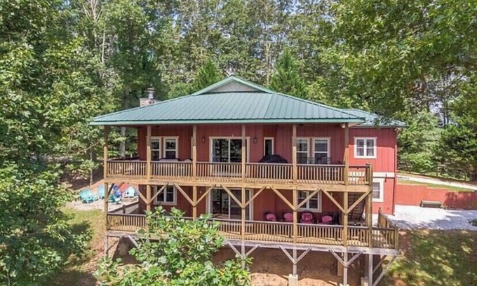 The Red Rooster is an updated family and pet friendly mountain home with a stunning mountain view. This home features, 4 bedrooms and 3 bathrooms,Sleeps 12 two updated stocked kitchens, two family rooms w/reclining sofas & large screen tv's,two story deck with Hot Tub,grill,outdoor dining,& amazing fire pit area. Upstairs 2 bedrooms & 2 bathrooms, downstairs is 2 bedrooms 1 bath along w/a family fun space with game table, board & standing arcade games. New High Speed Starlink WIFI & Sat Cable. Spacious family retreat!
