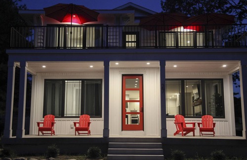 Your stay at REDBUD HOLIDAY HOUSE comes complete with a myriad of amenities tailored for memorable gatherings. The expansive cook's kitchen features an oversized island, wine fridge, pantry, and two ovens, perfect for preparing meals and hosting pre-wedding celebrations. Choose between cozying up in the living room beside the marble-surround fireplace or taking advantage of the sprawling outdoor spaces, including a second-story deck with lake views, where you can enjoy al fresco dining or simply unwind after the festivities. With generous front, side, and back yards, there’s ample room for lawn games and evening bonfires, creating beautiful memories that last a lifetime.